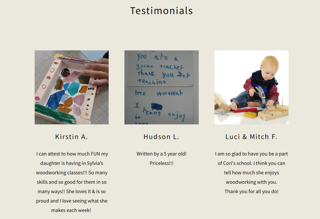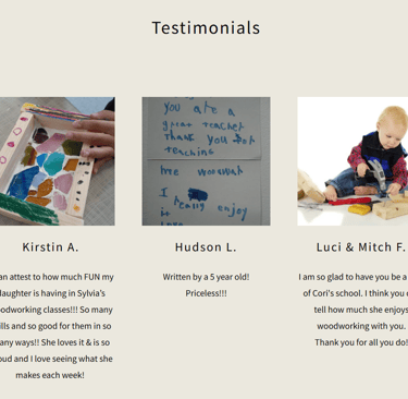 We offer hands-on art and woodworking classes for kids and adults, along with special workshops. Our specialty is introducing preschoolers to woodworking through fun, safe, and creative projects